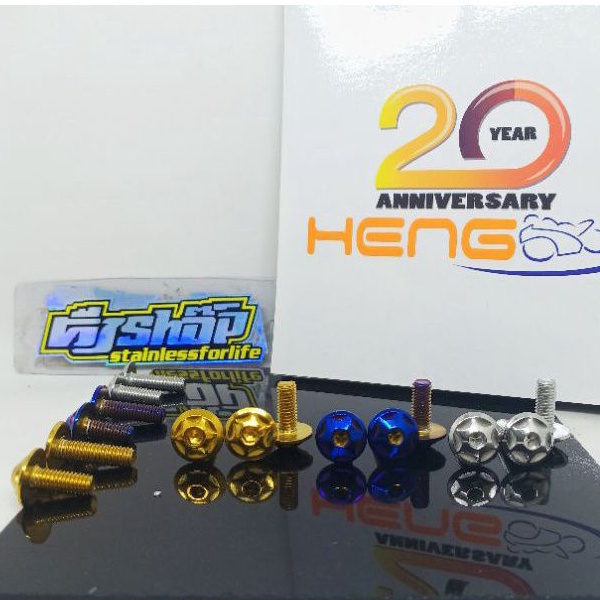 Harga satuan (coretan hanya contoh penempatan)Drat 10 m6banyak fungsiKunci L5Stainless gold blue chromePanjang 1,5cm & 2cmHarganya satuan ya inget !Bahan stainless gold blue chrome full. Bisa juga untuk body jupiter,vega,supra,fu yg pakai drat 10 ya. Be a sma