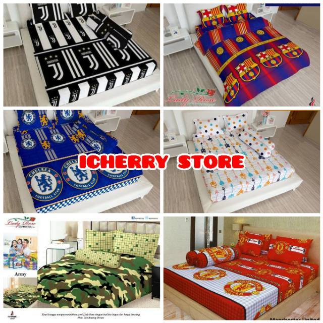 Harga Gila Perlengkapan di Kota Batam Sprei Lady Rose 3d 180 160 120 100 Manchester United, Chelsea, New Juventus, Barcelona, Army, Arrow dari Icherry Store Kota Jakarta Utara