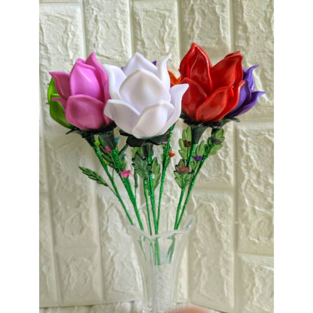 Mawar sekop besar dari bahan manik akrilikBisa request warnaSetiap pembelian 15 tangkai gratis 1 tangkaiGratis kardus n pengamanGaransi pengiriman, barang rusak akan di ganti baru, ongkir tetap di tanggung pembeliUntuk reseller boleh langsung chatInshaAllah am