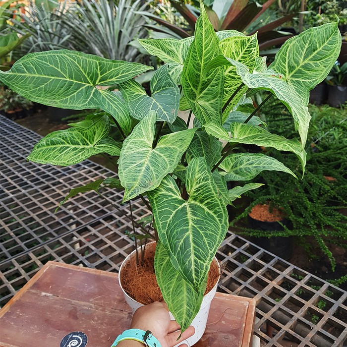 Syngonium podophyllum 'Batik' Perawatan: MudahFungsi: tanaman pot, dekorasi ruang, deskplant Ukuran :Size S pot 10cm (daun rimbun)Size L pot 20 - 25 ( Daun rimbun corak batik, lebih terlihat jelas) PROSES PENGIRIMAN1. Tanaman yang kami kirim, diseleksi dan di treatment terlebih dahulu, dengankondisi yang baik dan layak kirim.2. Tanaman yang kami jual merupakan bibit yang dirawat dari nursery sendiri.dikirim dalam keadaan berbunga / tidak (menyesuaikan kondisi / musim)3. Packing tanaman disesuaikan dengan jenis tanaman, sehingga aman dan terjagakualitasnya.4. Untui pengiriman via JNE/JNT/Tiki dan sejenisnya, media tanaman (tanah/sekam)akan kami kurangi untuk mengurangi berat. Namun tetap aman sampai ditujuan.5. Untuk mengurangi resiko tanaman rusak serta hasil yang maksimal, kamisarankan menggunakan instant kurir / Sameday / pengiriman cepat atau exp
