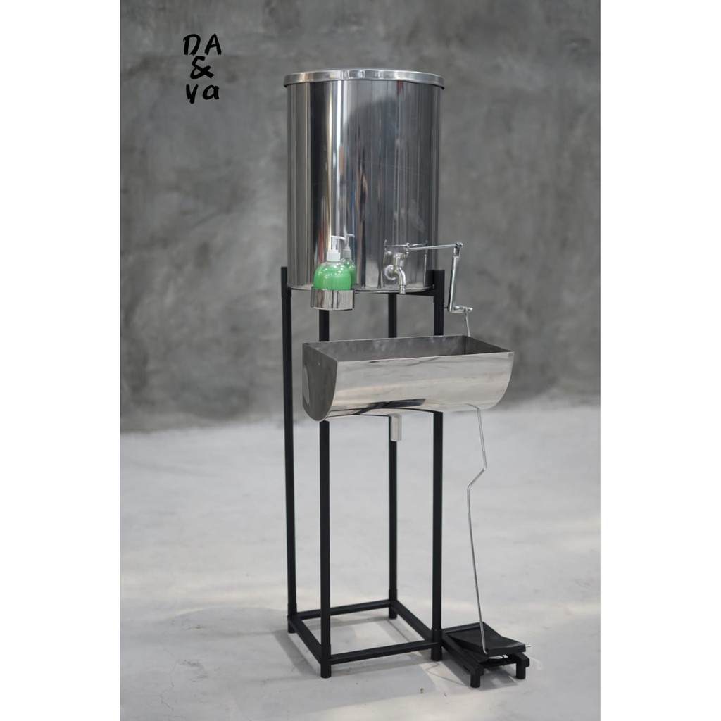 Mari dukung gerakan cuci tangan dengan air dan sabun untuk melawan virus covid 19 sesuai dengan arahan Pemerintahan.Wastafel Portable Higienis dengan Kualitas Premium & Design Elegan dengan mekanisme sistem injak (untuk mencegah penyebaran covid 19 )1.Penampungan Air 60 liter , material : Stainless2.Tampungan Cuci , material : Stainless Steel3.Free 1 botol & isi sabun cuci tangan 600 ml* Keuntungan Bahan Stainless Higienis & Tahan