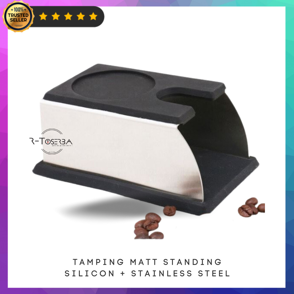 **Dear Customer Demi Kenyamanan dan Keamanan Anda, Silahkan baca deskripsi secara lengkap dan tanyakan stock sebelum membeli.**Tamping merupakan sebuah proses memadatkan bubuk kopi yang ada pada portafilter. Untuk memudahkan proses tamping, dibutuhkan tamper dan beberapa barista biasanya akan lebih mudah untuk melakukan proses tamping langsung di meja, oleh sebab itu disediakanlah mat untuk proses tamping sekaligus sebagai holder tamper.## FEATURES**Tamper Holder**Media khusus untuk menaruh tamper kopi ini terbuat dari silicone yang lembut serta tidak mudah slip pada bagian bawahnya, sangat cocok untuk para barista yang melakukan proses tamping di meja.**Compact Size**Tamper holder ini memiliki ukuran yang cocok untuk hampir semua ukuran meja.**Silicone Material**Tamper holder terbuat dari silikon yang membuatnya tidak mudah bergeser pada saat proses tamping.**PACKAGE CONTENTS**Barang-barang yang Anda dapat dalam kotak produk:1 x Tamping Mat Stainless Standing Tamping Stand Tatakan Tamper Large*Video tersebut hanyalah untuk ilustrasi fungsi dan penggunaan produk. Kami tidak menjamin barang kami 100% mirip dengan produk dalam video tersebut.***Perhatian!!!**Barang pecah belah/elektronik, kelalaian kurir (pecah,rusak,patah) kami hanya bisa bantu claim asuransi.Proses claim 2 minggu (TIDAK BISA RETUR / kembalikan uang), GUNAKAN ASURANSI JIKA ANDA RAGU. Sebelum kirim barang akan kami cek dan kami akan pack sebaik mungkin menggunakan kardus ganda jika anda tetap ingin menggunakan jasa kurir Reguler.~ Dengan membeli berarti anda menyetujui ~***Jika Anda setuju dan memberikan bintang dibawah 1-3 Akun Anda akan kami Report + Blo