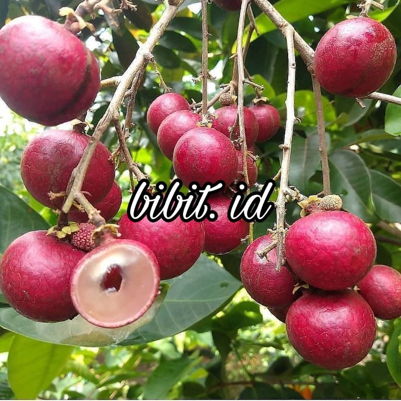 Kelengkeng unggul dengan tinggi 60 cm Tanaman buah Kelengkeng merah atau yang sering dikenal sebagai kelengkeng Ruby Longan ini merupakan salah satu varietas kelengkeng langka dan unggulan dari hasil dari mutasi gen. Kelengkeng merah ini lahir dari gen kelengkeng biasa yang berwarna cokelat mengalami mutasi gen karena pengaruh radiasi sinar kosmik Keunggulan Buah Kelengkeng Merah : Buah Kelengkeng Merah memiliki rasa buah yang manis Memiliki Warna kulit merah Solid ( warna eksotik) Memiliki Daging buah yang tebal Memiliki Rasa yang manis, mencapai level 21 briks Dalam Proses pertumbuhan, Kelengkeng kelengkeng Ruby Longan Berbeda dengan kelengkeng jenis lai