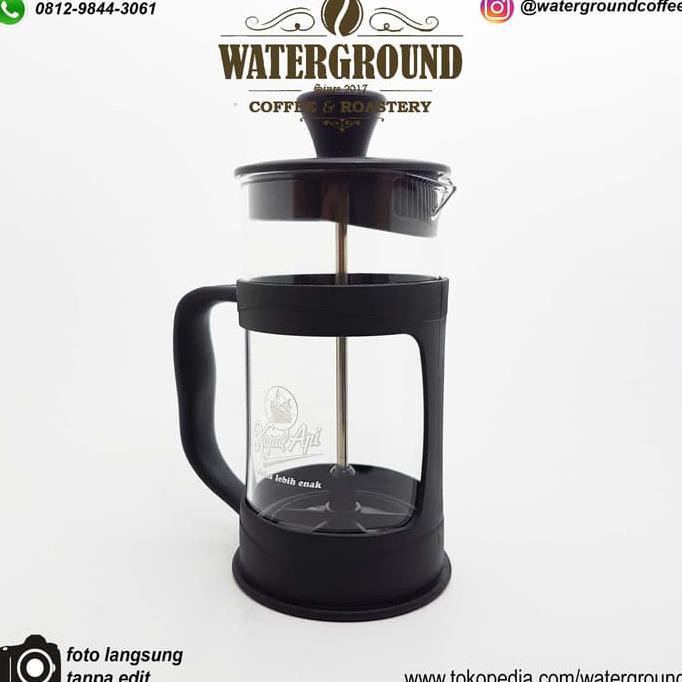 HARGA TERMURAH Dear Coffee Lovers,Buat kalian pecinta kopi yang baru-baru , pasti ga suka dong sama ampas bubuk kopi tubruk? Rasanya pahit terus sepet bikin ga nyaman di tenggorokan. Mau beli saringan kopi yang keren2 kayak barista tapi ga se "niat" itu buat ngopi nyantai di rumah pagi atau sore hari . Karena itu French Press cocok banget buat kamu nih..French Press memiliki nama yang berbeda2 di setiap belahan dunia. Di Italia disebut sebagai caffettiera a stantuffo . Di New Zealand, Australia , dan Afirka Selatan disebut sebagai Coffee Plunger . Kalau di Indonesia yah , disebutnya alat kopi ajah.Tidak diketahui jelas siapa yang pertama kali menemukan cara menyaring kopi dengan konsep coffee press ini , namun pastinya pada tahun 1900an konsep ini sangat banyak digunakan di Perancis (French) . Perkembangan bentuknya pun berubah sangat banyak dari awal penemuannya sampai modern seperti sekarang. Yah buat tau lebih lanjut silahkan cek wikipedoa aja lah hehe.Buat kamu yang butuh spesifikasi produk ini :Merk : Kapal ApiKapasitas : 350mL (Kapasitas Sebenarnya 430mL)Bahan : Kaca Tebal Tahan Panas dan Plastik Food GradeSaringan dengan tepi karet. (100% Kopi Tersaring)READY STOCK : HITAM DAN MERAH (NB : Jika tidak mencantumkan warna yang diinginkan maka akan dikirim sesuai stock tersedia yaa... XD)Jadi guys , nikmatin kopi hitam jangan mau lagi cuma tubruk aja. Disaring lagi dong pakai Kapal Api French Press !!!NB : Video hanya tutorial penggunaan umum , bukan produk kami Tq- Waterground Coffeebarang kami selalu ready ya kak bila ada di etalase... jangan ragu untuk segera order barang kita ya kak.... No return No komplainbaca diskripsi sebelum membeli... terima kas
