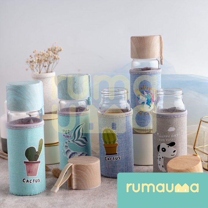 RUMAUMA Wooden Bottle Water Glass Character - Botol Minum Tutup KayuNikmati kesegaran air minum Anda dengan botol minum terbaru dari Rumauma, memiliki tutup yang terbuat dari bahan kayu tebal yang anti retak dan botol nya sendiri terbuat dari kaca tebal anti bocor dan pecah. Desainnya sangat simple tapi elegant tidak murahan :)Botol ini tahan panas dan memiliki Motif yang unik dan minimalis akan membuat anda terlihat lebih trendi.Botol ini juga memiliki tutupan yang berfungsi untuk melindungi badan botol supaya tidak gampang tergores/lecet.Di bagian tutup kayu nya juga terdapat tali pegangan yang dapat digantungkan dan sangat cocok untuk di bawa kemana-mana. Dan dapat juga di bawa saat bepergian/ sekolah dan kerja.Dapat di jadikan botol minum anak sekolah, dibawa hangout, ataupun hadiah untuk orang terkasih.Terdapat 11Motif Karakter:- Biru Mermaid- Biru Kaktus- Biru Muda Kaktus- Biru Muda Unicorn- Beige Puppy- Tosca Unicorn- Tosca Jerapah- Yellow Kucing- Yellow Mermaid- Biru Jerapah- Yellow CactusSemua motif ready yahSilahkan dipesanTerima