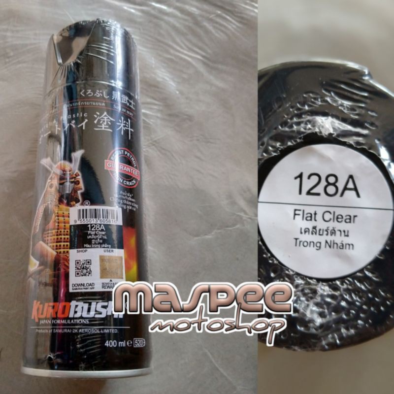 Samurai Flat Clear 128A/ Clear DoffJenis Barang : Cat SemprotMerk : SamuraiIsi: 400 mlKode warna : 128AAplikasi: Metal dan PlastikJarak semprot: 8-15 cmTAHAN BENSIN DAN TAHAN RETAK#samuraipaint#samuraiflatclear128A#catsamurai#catse